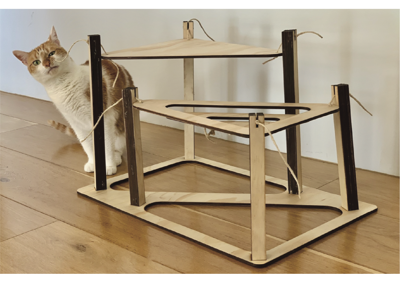 Cats like the security of familiar things around them. The flat-pack cat tree is designed built with sustainably sourced components, then constructed to be flat packed for assembly by the customer. Perfect for taking your puss on holidays.